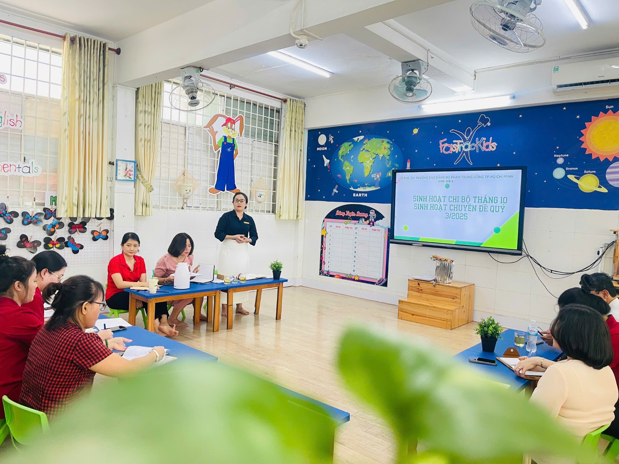 Ngày Thứ Tư, 08/10/2025, Chi bộ 6 – Trường Mầm non Thực hành đã tổ chức sinh hoạt chi bộ định kỳ tháng 10 kết hợp sinh hoạt chuyên đề quý III/2025 trong bầu không khí nghiêm túc, khẩn trương, tập trung và sôi nổi. Buổi sinh hoạt vinh dự đón tiếp đồng chí Nguyễn Quý Hòa – đại diện Ủy ban Kiểm tra Công tác Đảng của Đảng ủy Trường Cao đẳng Sư phạm Trung ương TP.HCM đến dự và theo dõi, góp phần động viên tinh thần tập thể chi bộ.