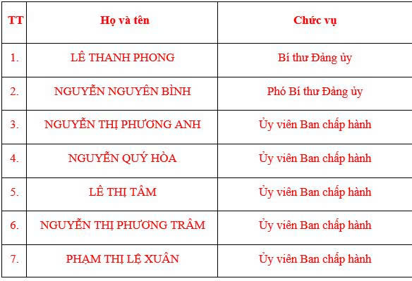 BAN CHẤP HÀNH ĐẢNG BỘ NHIỆM KỲ 2025 - 2030