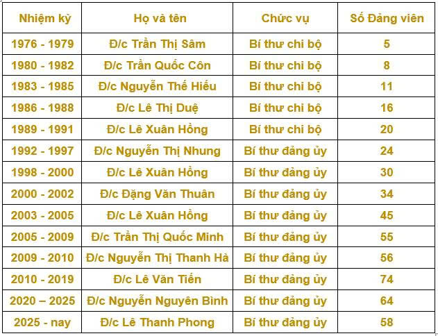 CHI ỦY, BÍ THƯ, PHÓ BÍ THƯ CÁC CHI BỘ NHIỆM KỲ 2025 - 2027