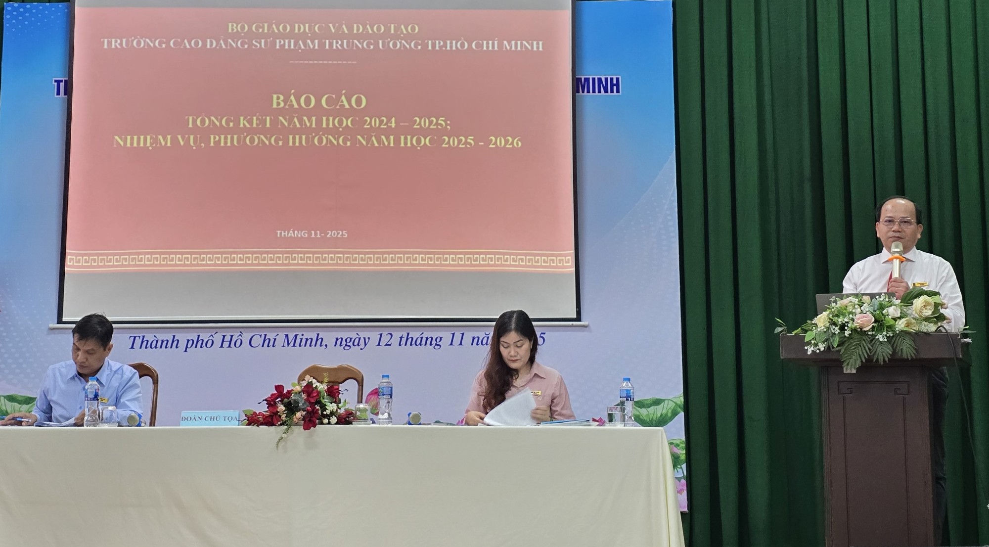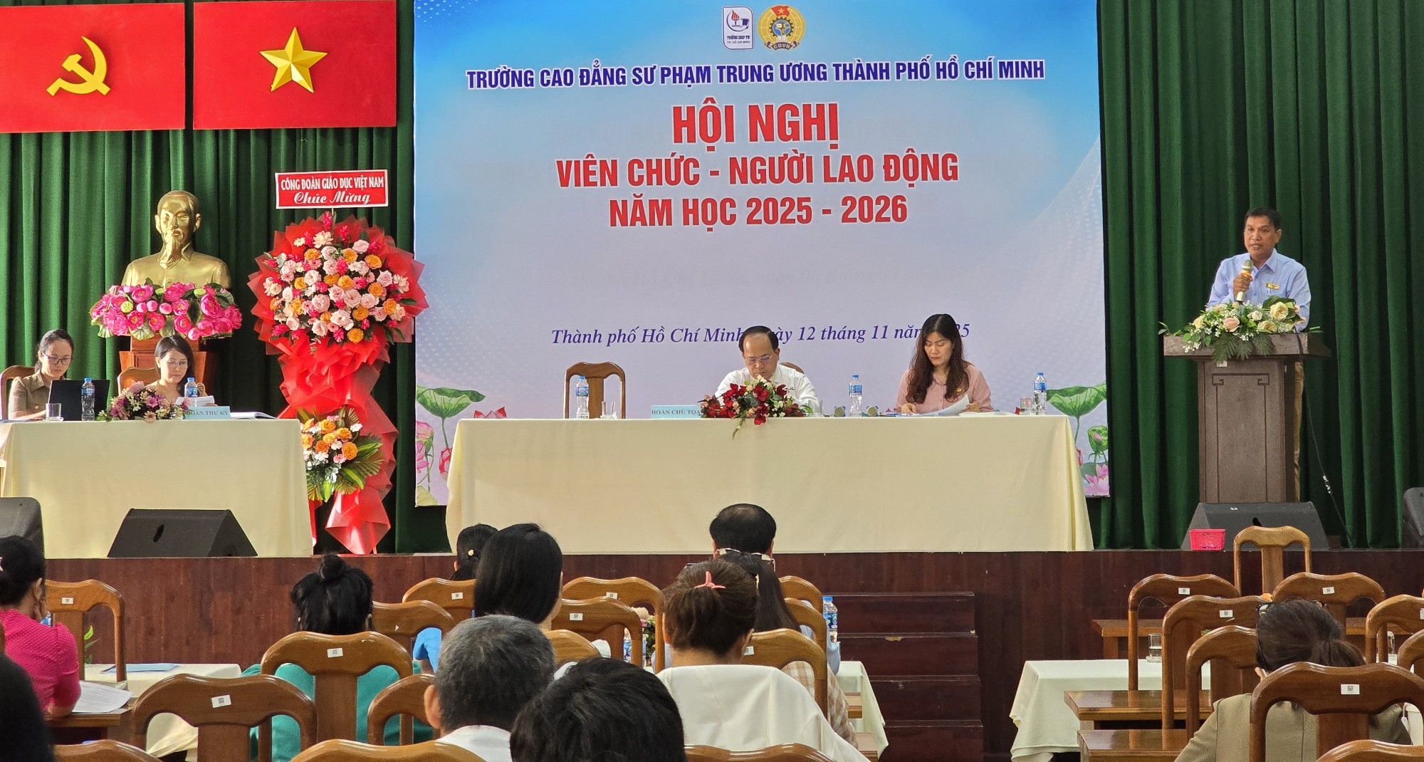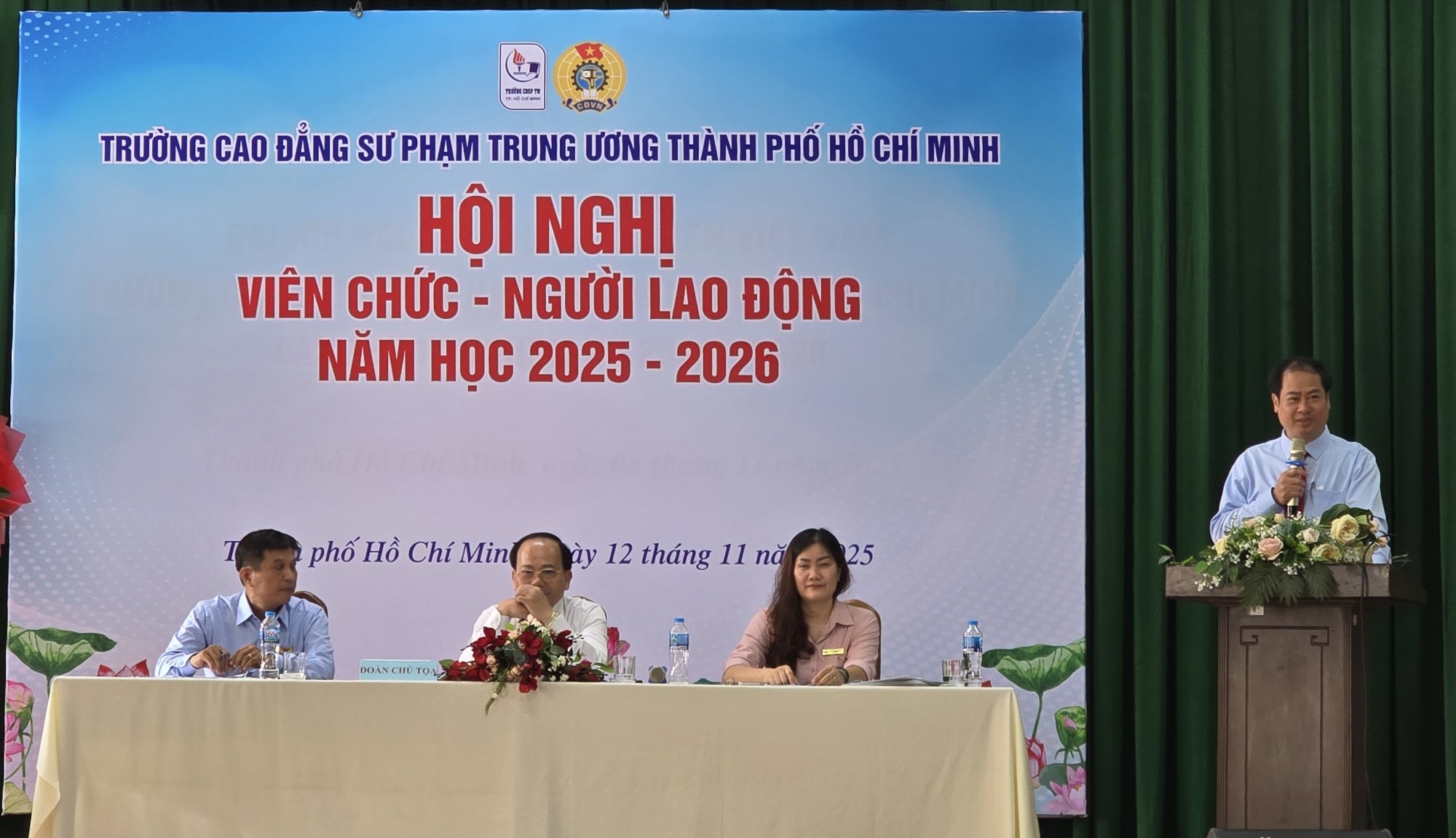 Ngày 12/11/2025, Trường Cao đẳng Sư phạm Trung ương TP. Hồ Chí Minh long trọng tổ chức Hội nghị Viên chức và Người lao động năm học 2025–2026. Đây là sự kiện thường niên nhằm đánh giá toàn diện hoạt động của Nhà trường trong năm học trước, đồng thời đề ra phương hướng, nhiệm vụ và giải pháp trọng tâm cho năm học mới, hướng tới phát triển ổn định và bền vững.